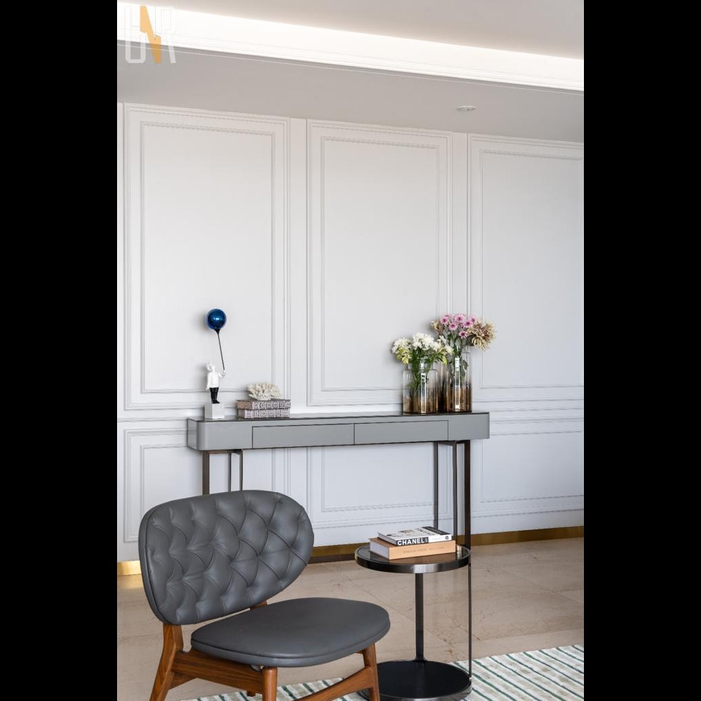 A console table adds instant charm to any hallway or living area. At UNR Kitchens in Mukund Nagar, we craft console tables that serve both as décor highlights and practical additions to your home. Designed to hold artwork, lamps, or small essentials, these tables elevate the look of any interior with their minimalist appeal and fine detailing.