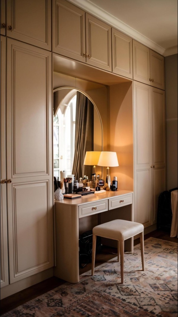 A dressing table works best when storage and usability are thoughtfully planned. Drawers and shelves allow personal items, cosmetics, and accessories to remain organized and easily accessible. Mirror placement, surface height, and lighting compatibility are considered during design to enhance comfort during use. Finishes are selected to complement wardrobes and beds, creating a visually cohesive bedroom setup.