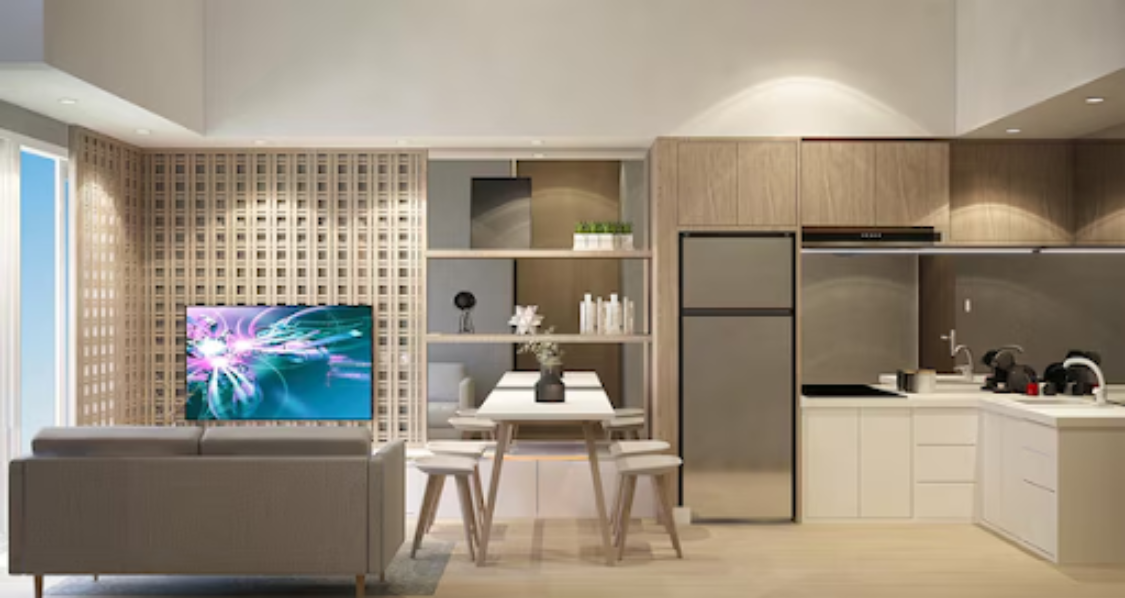 Our modular kitchens are designed to optimize space, ensuring that every corner is used effectively. Whether you're working with a small space or a large one, we offer customizable solutions to fit your needs. From sleek louvers TV units to pop TV units, we have a variety of designs to choose from, ensuring that your home reflects your personal style.